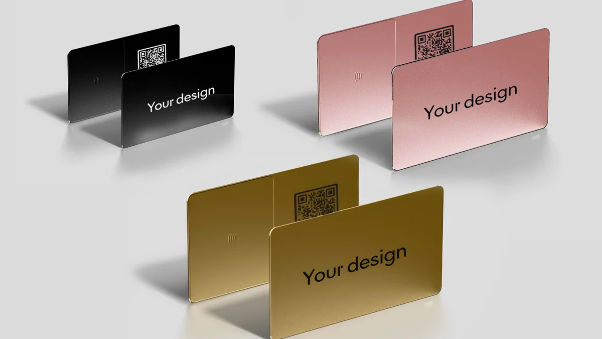 Tradicionalne papirnate vizitke polako odlaze u prošlost, a njihovo mjesto zauzimaju digitalne vizitke, koje donose brojne prednosti. Sada su dostupne u premium metalne digitalne vizitke koje dolaze u tri izuzetno elegantne i privlačne boje: crna, zlatna i roza gold.